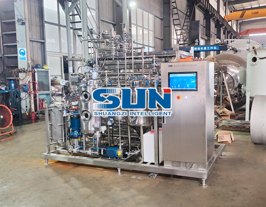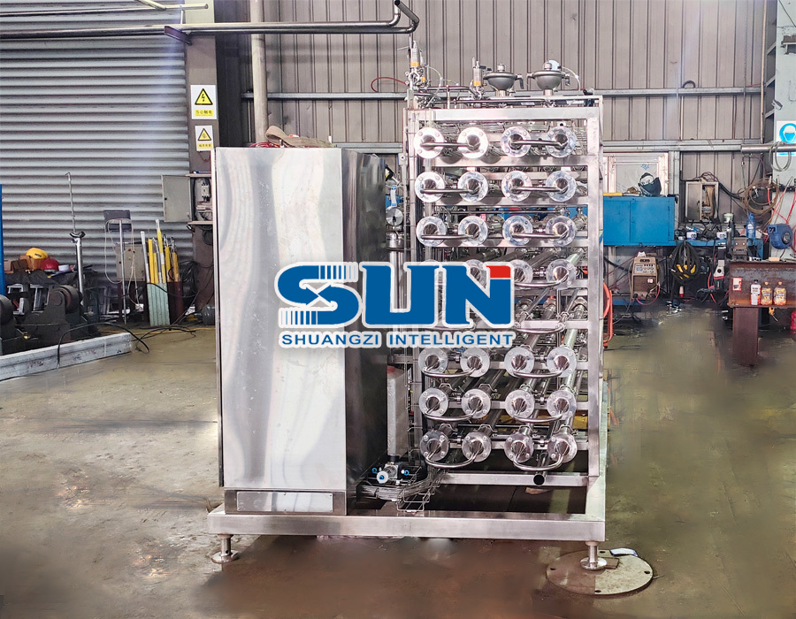يستخدم المعقم الأنبوبي UHT على نطاق واسع في الحليب والعصير ومشروبات الشاي ومستخلص الأعشاب الصينية وغيرها من المنتجات. يتم استخدام المعدات بشكل رئيسي في عملية التعقيم والتبريد لمختلف المواد المركزة. إنها مكونة من خزان تخزين المواد، خزان الماء المسخن، المضخة، المبادل الحراري الأنبوبي، نظام التحكم PLC، خزانة التحكم، نظام سحب البخار، الصمام، مفتاح الحث، إلخ. هذه الآلة مناسبة لجميع أنواع عمليات تعقيم وتبريد المواد المركزة، نطاق لزوجة المنتج واسع، ويمكن أن يتكيف مع الألياف والجسيمات. من السهل فحم الكوك، ووقت الإنتاج الطويل. معامل نقل الحرارة العالي: يعمل المبادل الحراري الأنبوبي والمواد ووسط التبادل الحراري في الحالة المضطربة، وتكون كفاءة التبادل الحراري عالية، ويتم تقليل القياس، ويزداد وقت العمل المستمر لآلة التعقيم. قابلة للمقارنة تمامًا مع المعدات المستوردة. كفاءة حرارية عالية: بعد تسخين المادة، يمكن استعادة أكثر من 90% من الطاقة الحرارية. لا توجد نقطة اتصال في الأنبوب، ولا توجد زاوية صحية ميتة، ولن يلتصق المنتج بالأنبوب، وليس من السهل قياسه: ويشكل المنفاخ اضطرابًا عاليًا في عملية التعقيم، وله تأثير التنظيف الذاتي في عملية تدفق المواد، لذلك ليس من السهل تكوين مقياس وتلوث في الأنبوب.